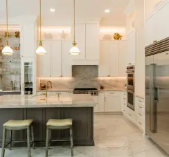 This Pennock Point home was ready for change and wanted to open spaces up and provide a British West Indies themed rework with a Transitional appeal. Even the Carriage House had attention to detail and provides a luxurious landing spot for any family or guests that stop by for extended stays. Rift Cut White Oak with a Cerused look was utilized throughout. We chose an absolutely beautiful Cristallo Premium Quartzite for countertops which turned out stunning!